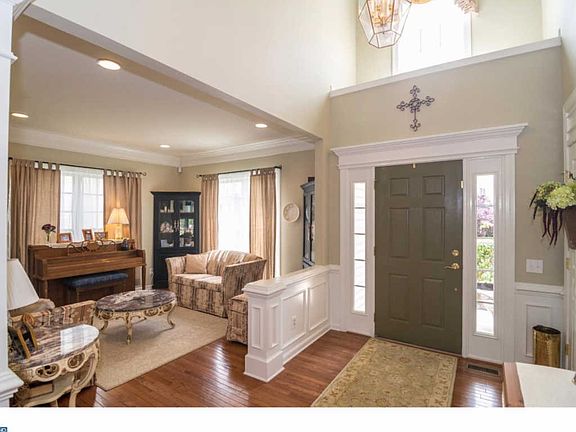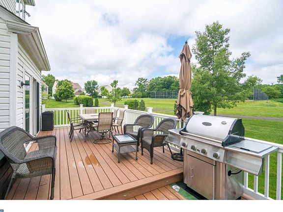 Enter this brick front home from the cozy front porch, into the soaring two story foyer, appreciate the hardwood floors and the open flow of the main level. Take notice of the extensive wood trim t/o, the elegant living & dining rooms, and the sprawling family room with fireplace. Hide away in the first floor study/library, or entertain in the enormous gourmet kitchen with breakfast room, that leads out to a magnificent deck on a premium lot backing up to open space and a pond. Stroll to tennis courts or ball fields, and all conveniently located to Bucks, Montgomery, and Lehigh Counties. The second floor boasts a stunning master, a princess suite, nursery, and additional 4th bedroom, all with ample closets. The walkout basement is professionally finished with a private 5th bedroom and a full bath. This is a Home Run!!