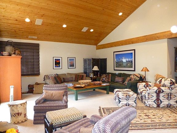 Location, Location, Location 4th lot from Canyon Lodge. Custom home, warm south facing, all day sun. The lay-out is perfect for entertaining, and the kitchen, dining, living area offer a great room for large or intimate gatherings. 6 bedrooms, game room. Vaulted ceilings in living room and master. Kitchen has granite, stainless steel appliances, sliding glass doors to deck for outdoor enjoyment off both the living room and dining room. Master has its own fireplace, walk-in closet, Jacuzzi tub and access to deck. Finishes and furniture coordinated by Corinne Brown, ASID. Solid core doors, slate floors, custom tile work and cabinets. Custom window coverings, extensive lighting and all bedrooms are spacious. Mini master or baths adjacent to bedrooms. 3 heat zones, large additional storage area off game room. Custom pool table in game room. Treks decking. Furnishings are negotiable.