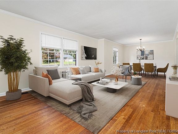 Just what you have been waiting for! A spacious ranch style home with 3 Bedroom 2 Bathroom. Walk into an open concept living/dining area with beautiful hardwood floors. The Kitchen is open to the breakfast nook and includes a stainless-steel refrigerator and plenty of prep space. The family room is ready for evenings of entertaining before exiting into the huge flat fenced backyard with garden. All bedrooms are spacious and has great natural lighting. The primary bathroom has a walk-in tiled shower and vanity perfect for spa nights! Come tour this home! It's freshly painted on the interior and exterior and only minutes from the Yadkin gate/access control point that leads into Fort Liberty. Imagine coming home every day during your lunch break to just breath or enjoy a refresher.