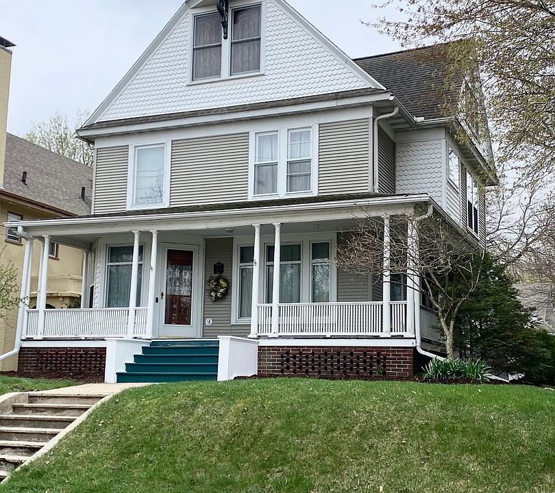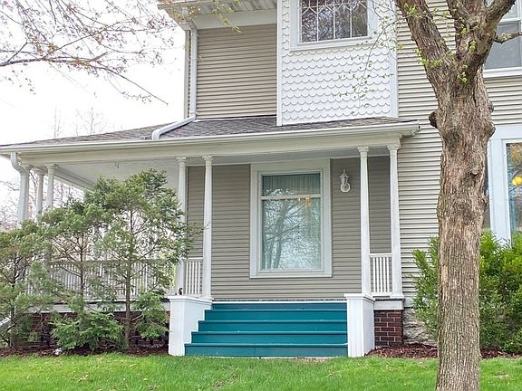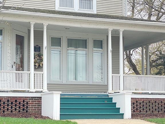 This is a must see ~ 3 fully finished levels! Enter on the inviting wrap around front porch, to the foyer filled with beautiful natural woodwork, open staircase, front parlor has pocket doors to the living room, separate dining room has a built in hutch and all hardwood floors. Cabinet filled kitchen - stove and dishwasher new in 2022. 3rd floor boasts master suite with big full bath, separate water coil heat and air conditioning in 2021. Additional 3 bedrooms, full bath and laundry on the 2nd floor This home has vinyl siding and replacement windows, hybrid water heater, high efficiency furnace and air -2014, water softener, reverse osmosis system, 200 amp service, gutter guards, back patio, shed and 2 car garage. Fantastic location near center of town. Possession to be end of June.