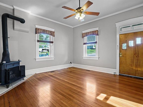 Charming 1.5 story brick home built in 1880 located on a corner lot. Main level offers a cozy living room with vented gas fireplace and hardwood floors. Cheerful kitchen/dining combo with white cabinets, backsplash & hardwood floors. Kitchen appliances that are present stay. 1 bedroom on main, office/sitting room or possible bedroom and full bath. Upper level features a lovely bedroom with plenty of storage. Unfinished partial basement with laundry area and crawl space. Delightful curb appeal, fenced back yard with deck. Shed for storage or workshop with electric & concrete. 1 car detached garage. Many updates bath fitter just installed in 2020, newer driveway approx 2 yrs old, HVAC 2016 and more. Don't miss out, call today to make your appointment.