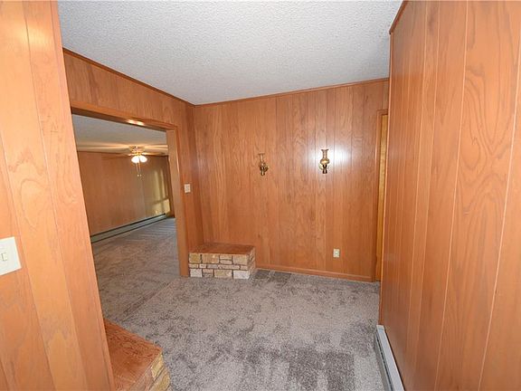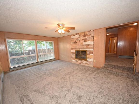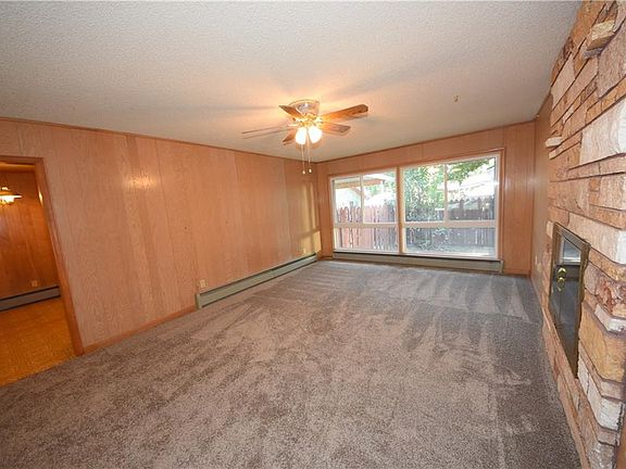 Home with vintage details in desirable location with ample main floor square footage including hardwoods in 3 bedrooms, one bedroom has sliding door to west patio, huge living room with travertine wood fireplace, new carpeting throughout, large kitchen adjacent to one dining area that has door to covered back patio, utility room with cupboards, large double garage, detached finished shop with many plug-ins.