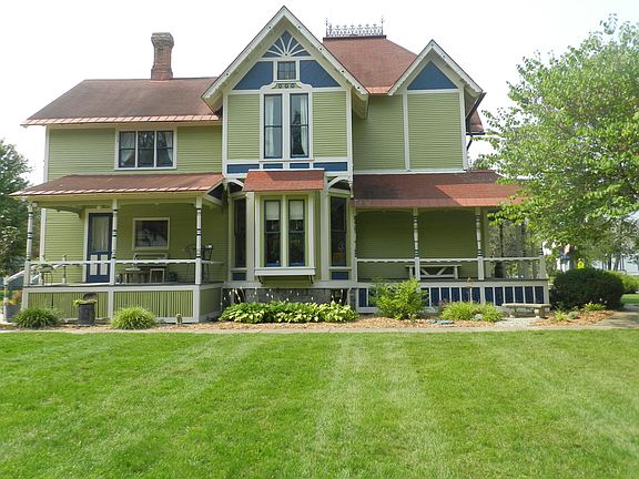 WELCOME HOME TO THIS OUTSTANDING QUEEN VICTORIAN HOME, ORIGINALY BUILT AND OWNED BY JOHN CRISPE (historical documentation provided). Mr. John Crispe was Plainwell's first Postmaster, Pharmacist and General Store Owner. In 1882, President Hayes granted the land to Mr. Crispe where the home now stands. This well built historical home stands proudly and stately with beautiful gardens that over look the Kalamazoo River. The home was ran as a bed and breakfast for over 30 years. This beautiful home has 5 bedrooms and 4 full baths with original butternut (white walnut) doors and trim, 10' ceilings and 9' doors throughout. Take note of the stunning light fixtures, ceilings, the solid wood pocket doors and all of the moldings throughout are handmade from plaster and the windows are original. This home is just exquisite! The carriage house/barn used to house horses on the main level. Top level could be used as a studio. A Must See!