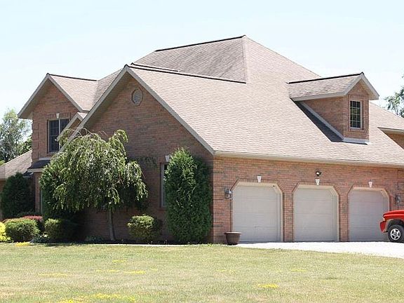 Call 419-565–2149 to view this beautiful and spacious custom Amish built all brick home. It sits off the road and back a long driveway on 20 acres with a peaceful flowing creek behind the property. This home is in the highly sought after Crestview school district. This two story house has 4 bedrooms, 2 and a 1/2 baths with a full size 13 course walkout basement. This property has an above ground swimming pool that is crystal clear and a 40x56 pole building. This is the dream home you have always wanted! Built in 2006, this home was designed with an open concept living space which is perfect for family gatherings and entertaining. The large kitchen has quartz countertops, a bar that can seat seven and has all stainless steel appliances. The kitchen has a beautiful breakfast nook with windows and french doors on three sides. The kitchen is open to the living room which has a stoned electric fireplace, cathedral ceilings and two sets of french doors which allows the natural sunlight to shine through and beautiful views of the sprawling backyard, woods and wildlife. The spacious master suite has an additional set of french doors that lead out onto the full length deck. The master suite has a walk-in closet, a master bathroom with double sinks, a relaxing jetted tub with a separate fiberglass shower. There is an adjacent laundry room with two access doors for laundry convenience on the first floor. The foyer will welcome guests into your home with an arched window for natural lighting. The entrance to your beautiful home is open to the living room, a dining room and an office. This house has a three car attached garage with plenty of extra space for shelving, storing bikes or other hobby items. There is an entrance from the garage into the kitchen area where there is a separate mudroom. Next go to the upstairs of this house that has hardwood steps and oak railing. There are three bedrooms and one full bath on the upper level with the hallway open and overlooking the living room and foyer. All bedrooms have closets with one of them having a large walk-in closet for all your clothing and storage needs. Enjoy the beautiful outdoors overlooking the above ground pool on the wooden deck that spans the length of most of the house. New wooden floor and steps replaced in 2019. The lower level walkout basement is 13 course high with french doors that lead to a concrete patio. The basement is partially finished with a wood-burning fireplace, a B-Dry basement system that was installed upon new construction and is plumbed for an additional bathroom. This basement is ready for your entertainment and recreational living. This property has a pole building 40x56 that is brick faced and has 12 foot ceilings and two 10 foot garage doors. This building has a concrete floor, electric, and ready for your hobby area and storage needs. This gorgeous property has lots of open land for activities, sports, farming and additional buildings if desired. This property also qualifies for the CAUV tax reduction. Recent updates include new deck flooring and steps in 2019 along with a new hot water tank in 2021. Three new garage doors are waiting installation. This home is in a great family friendly neighborhood among other charming homes. Ashland, Shelby, Ontario and Mansfield are all within close driving destinations. View your future home by calling 419-565-2149.