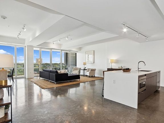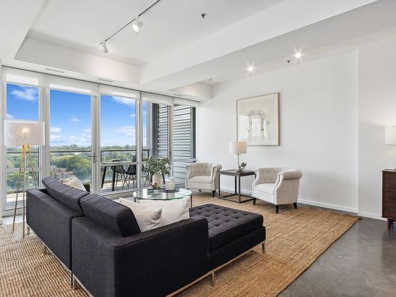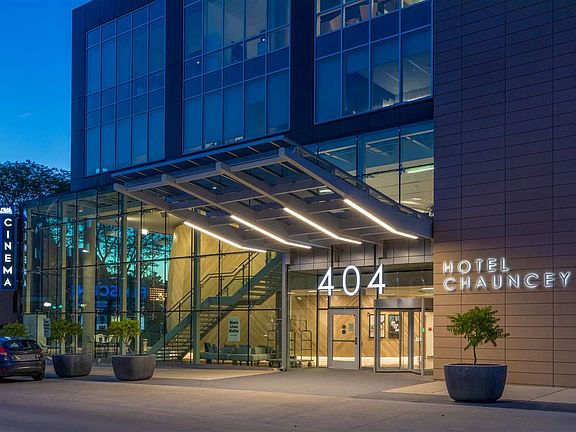 This 12th-floor condo offers chic living in Downtown Iowa City and incomparable amenities. An open floor plan layout lets you savor expansive views of the College Green Historic District throughout this unit. Polished concrete floors, aluminum framed windows, contemporary lighting, and sleek cabinetry make this space undeniably modern. A stylish kitchen anchors daily life in this open plan. White and gray custom cabinets with under-cabinet LED lighting are paired with white Corian counters to create a seamless modern palette. The large island offers a breakfast bar, sleek sink, and waterfall countertop. Kitchen appliances include a Fisher & Paykel oven and induction cooktop, Zephyr hood, Fisher & Paykel 36-inch French-door refrigerator-freezer, Sharp top-access microwave, and Fisher & Paykel double dish drawer dishwasher. This open plan offers flexibility when creating sitting and entertaining spaces. Regardless of placement, residents and guests will enjoy sweeping views of East Iowa City from living and dining areas. An expansive covered balcony is accessed off the main living area. The powder room has a floating vanity with walnut detailing and white Corian countertop. The primary suite is located through a pocket door with a distinctive horizontal grain walnut. The en-suite bath has a tiled rain shower, handsome floating vanity, and designer fixtures. The bedroom also has a large walk-in closet and offers access to the covered balcony. This condo also features Lutron switches and dimmers, floor outlets, hard-wired data jacks, contemporary track lighting, and sun-filtering shades. Includes one parking space in the secured underground garage. Building Amenities: FilmScene cinema features three screens (two on the main level and one on the second level). Fix Coffee shop SpareMe bowling alley and arcade Hotel Chauncey Fitness area Glass-walled main lobby area Fifth-floor terrace with landscaping and panoramic views of downtown Iowa City. Two secured elevators for building residents. Commercial office space Access to Chauncey Swan Park Access to Chauncey Swan parking lot