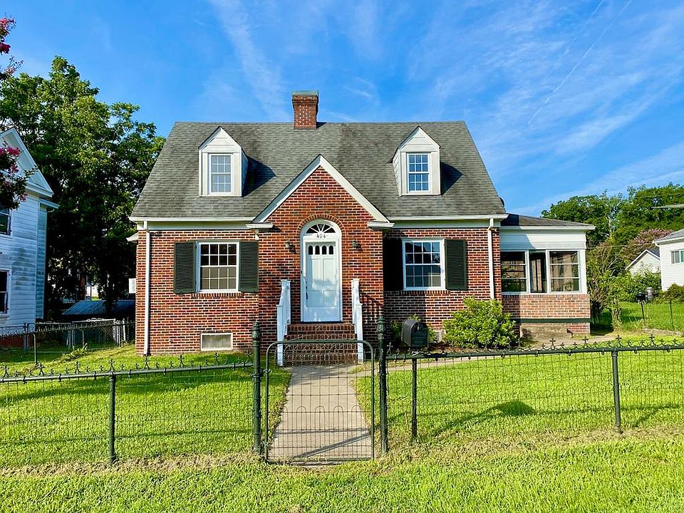 This wonderfully charming Cape Cod is now available in Crewe. Recently renovated, this three bedroom, two full bath brick home feels brand new and is sure to please. Step into the foyer and you are greeted by a large living room to the left with glossy hardwood floors, bay window and fireplace. To the right is a formal dining room with classic chandelier. The kitchen boasts brand new stainless steel appliances, new countertops and tile floors. The down stairs bedroom is ample with plush new carpet, and the adjacent full bath features tile flooring and an alcove tile shower with bench and recessed lighting. Equally impressive are the upstairs bedrooms also featuring cozy new carpet. The sun porch is a great place the relax and unwind and the entirely fenced-in yard will be enjoyed by all. The home also has a full basement with utility room and brand new washer and dryer. Four brand new window air conditioners keep the home nice and cool in the summer and the oil radiators supply toasty warmth in the winter. Come see all that this great home has to offer!
