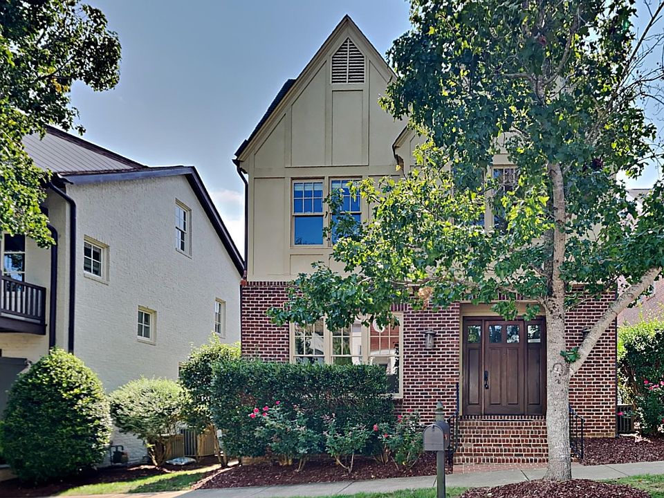Welcome to your beautiful 5 bedroom 3 story brick row home in desirable Chapel Hill, ten minutes from the University of North Carolina. This beautifully crafted home with upgraded finishes is in a park-like setting with neighborhood shops within a few steps from your front door and schools located outside the main community entrance. From the moment you enter you are greeted with hardwood floors, large crown moulding, oversized doors, wainscoting in the formal dining room, upgraded lighting throughout and tall ceilings in main areas just to name a few. The entrance is not to be outdone by the kitchen which features upgraded cabinetry, granite countertops, and chef-level built-in appliances all of which convey with the home. The first level features a dual office set behind beautiful pocket doors and first floor guest suite. Upstairs you will find the spacious owners suite with separate owners’ closets, and a private luxury bathroom. In addition to the guest  there are three bonus rooms in the home each offering something different. Don’t delay, request a showing appointment, today!