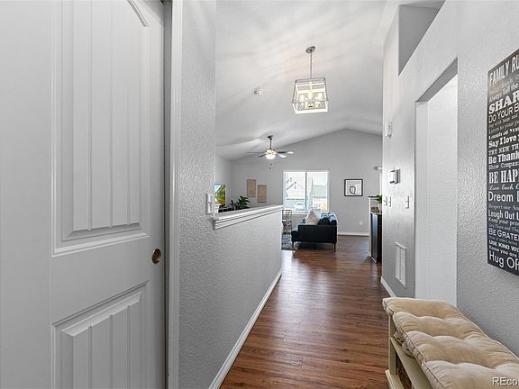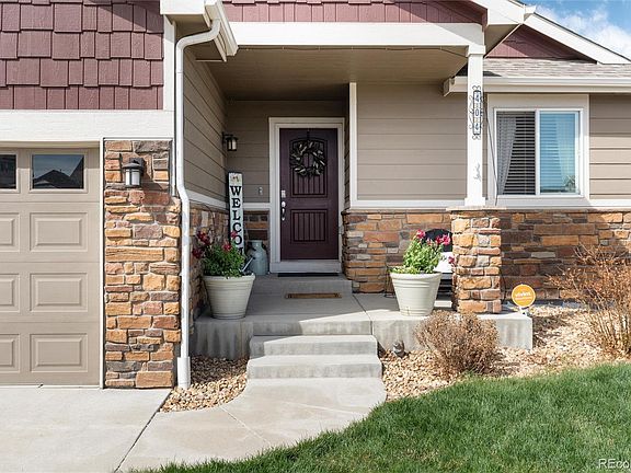 Schedule a visit to tour this unique property in a quaint yet progressive community, a true hidden gem. Minutes to Boulder, Loveland and Fort Collins, as well as recreation opportunities including Carter Lake and foothills. Expansive ranch floor plan with 2400 Finished Sq.Feet nestled within a recently developed yet established neighborhood. Just steps to community pool, park, trails and open space. Built in 2018, this 4 br/3 ba home features newer flooring and updated light fixtures on the main level. Kitchen has abundant amounts of granite counters and cooking/prep island. All bathrooms also have granite countertops. Living Room, Kitchen, Dining Room and Primary bedroom all have vaulted ceilings with primary closet organizer system. The finished basement is as bright as a garden level basement and contains two bedrooms, bath, rec area and unfinished storage space. Backyard is fully fenced, has a composite deck AND large patio space with mountain views. Well established landscaping with raised garden beds, drip systems, grape vines and a small pond with water feature. Shed with electrical service for extra storage and work space.