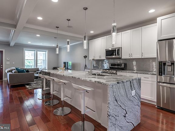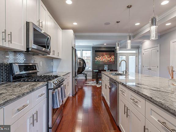 Stunning extra wide Petworth Wardman fully renovated with uncompromising craftsmanship throughout. Open concept main level features hardwood floors and a huge gourmet kitchen with tons of cabinets, gas cooking, stainless steel appliances, and comfortable seating for six at the 11' breakfast bar. Plenty of space for formal or casual entertaining with your 4-zone audio system while guests flow between the spacious living room, kitchen, dining room with fireplace, and rear covered patio plumbed with gas for grilling. Soaring ceilings in the master bedroom lead to a spa-like master bath with his-and-hers vanities, a huge skylight, and a glass enclosed shower with double shower heads! Fully equipped 1BR/1BA in-law/au-pair suite with its own kitchen, separate front and rear entrances, 9-foot ceilings and a second washer and dryer is an ideal income producing rental or AirBnB space. Drive up to your oversized 2-car garage, plug in your Tesla, and bring the groceries inside across the covered patio, without any concerns about getting caught in the rain! Interior/exterior security system with cameras to keep a watchful eye on your investment. Great location between two metro stations and walking distance to both Upshur Street or Kennedy Street.