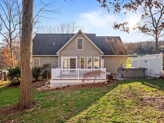 The perfect opportunity to own an affordable home in the desirable Belmont Estates subdivision. This three bedroom two bathroom home with a garage and primary bedroom on the main floor is ready for its new owners. Updates include just freshly painted, new electric box 2021, exterior of home stained in 2021, tiled bathroom/kitchen, 2006- roof replaced, added beautiful sun room, concrete patio, composite deck, and vinyl privacy partition. Enjoy a wood burning fireplace in the living room. On the second floor you will find an additional bedroom and living area as well as the second bathroom. The backyard is the perfect setting with mature trees, level yard, hot tub, and two outbuildings 12x16 and 12x20 both with electric. Perfect place for a workshop and additional storage. This home is a must see!!