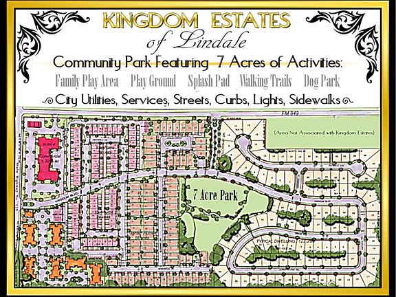 Come see this beautiful and energy efficient home being built in Lindale's newest community - Kingdom Estates of Lindale. We offer the best of all worlds - city amenities such as curbs, gutters, sidewalks, and street lights, as well as the sense of community that you get from a small town. This home is of the highest quality construction. Our 7-acre park offers greenspace and encourages outdoor activities. We offer value, charm, and a relaxing lifestyle. We are very convenient to IH-20 and Toll 49, thus providing the close convenience of local shopping and businesses, plus an easy drive to Dallas and Shreveport.