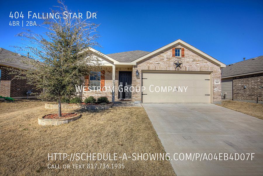 This 1725 square foot single family home has 4 bedrooms and 2.0 bathrooms. This home is located at 404 Falling Star Dr, Haslet, TX 76052.