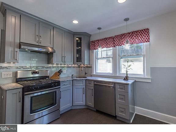 Amazing price and look at those taxes!Prepare to be wowed by the charm and beauty this twin home has to offer. Walk up and be greeted by the open front porch. Perfect place to enjoy a meal or work on laptop. Step inside and the lovely hardwood floors flow throughout the sunlit living and dining room. Stunning custom designed kitchen with recessed lighting, soft tone color scheme, new SS Samsung appliances, and extra spacious pantry. Pantry could be ideal space to add a half bath. View the fenced in rear yard and garage from this area. 2nd floor continues with the refinished hardwood floors, well maintained bathroom, and 3 bedrooms. Plenty of storage in the large unfinished basement, which has Bilco door access and double sinks. Central air compressor replaced 2017, new hot water heater in 2015,all electrical outlets, switches, and plated all updated, lightening upgraded to LED lighting, and flat roof resealed in 2017. Located on a lovely Palmyra street within walking distance to the the riverfront, train station, and main street shops and restaurants. Awesome location if you travel the Tacony Bridge. Garage and driveway is shared with the neighbor. 2018-10-01