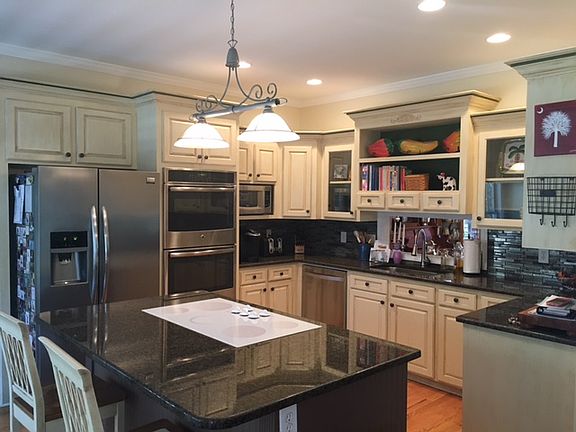 - RoomKitchenFeatures: Granite Counters, Kitchen Island, Pantry, Eat-in Kitchen, Floors-Hardwood, Cabinets-Other, Cabinets-Stained, Bar