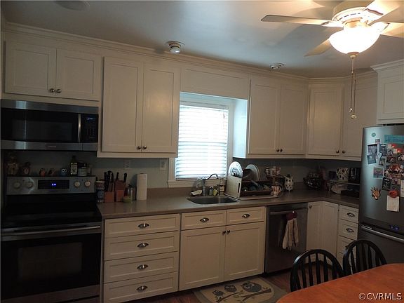 Cute as a Button Cottage and Renovated! This roomy (1300 sq.ft) 2 Bedroom home is nicely situated on a quiet street in "Small Town America" and just waiting for it's next Owner! Come fall in love with the renovated Kitchen with nice cabinetry and all appliances conveying! Both bedrooms have plenty of space for beds and accompanying furniture and more! Charming features include some laminate flooring, a spacious utility room with closet, an extra seasonal living space screened porch, a large fenced back yard, a storage shed, rear parking and more!! Vinyl Tilt Replacement windows! This AFFORDABLE home is the perfect place to get started or downsize! ** New Roof being installed prior to closing!