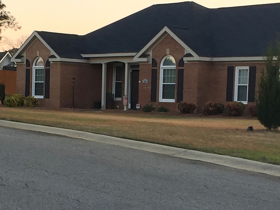 Beautiful brick front home on a large corner lot. . Beautiful chair rail molding in great room, dining room and kitchen, foyer with coffered ceiling. Split bedroom plan. Gas log fireplace with hearth. lovely privacy fenced back yard.