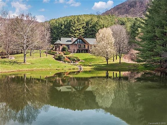 Take a ride through green valleys and mountain coves to this estate perfectly cradled on 24+ acres overlooking Cold Mountain. Strong spring, bold creek, and recirculating pond offer year-round water features. 2BiG Rig friendly full hook up RV sites with 50amp power. Trees bathe the wide decks with peaceful privacy. Rain chains with underground drainage, chefs kitchen, and Swamp Pine Cyprus flooring. The Great Room features a floor-to-ceiling stone fireplace, tongue-n-groove vaulted ceilings, french doors to the deck. Master suite with private patio, deck access, walk-in closets, and exquisite private bath. Large basement with tall ceilings and generous loft offering plenty of work and play space. Acres of mature pines can be harvested for income. Separate apartment suite with private access. Country clubs, galleries, fine dining, and live entertainment make up only a few of the county's services. This is the perfect mountain getaway so many long for. 15 minutes to downtown Waynesville.