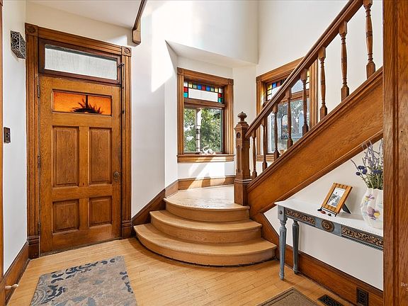 Own a part of Helena history! Built in 1889, the year of Montana’s statehood, this stunning 4-bedroom, 2-bath Victorian home perches on a corner lot in the upper westside neighborhood. Its huge wrap around porch welcomes you into the home’s two-story main entryway with grand stairwell, steeped in natural light from four large original stained glass windows. The main level features an open flow layout that moves from parlor, to den, to dining room – with original pocket doors in-between each room. From the dining room, you’ll pass through a butler’s pantry into the kitchen. All four bedrooms are upstairs, and accessible from both a front and back staircase. The master bedroom includes a brand-new walk-in closet, while the upstairs bathroom has a cast iron clawfoot tub, window, and plenty of storage space. The private backyard has a stone patio, hot tub, and deck for entertaining. The one car garage fits most SUV’s, has ample storge space, (CONTINUED)... and is steps away from the home’s mud-porch and kitchen.