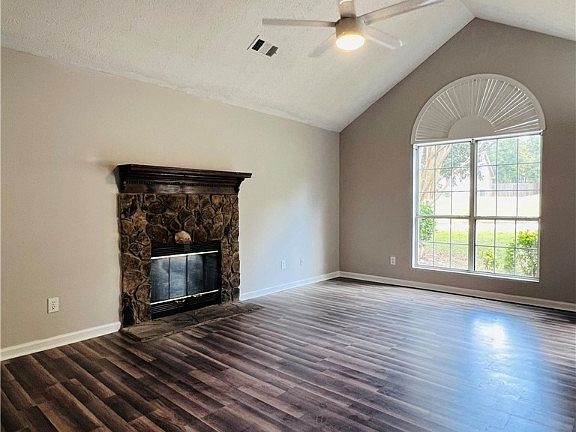 - Description: Wood-burning fireplace. Tray ceilings. Ceiling Fan. Fresh Paint. New Floors.,Flooring: Plank,Simulated Wood