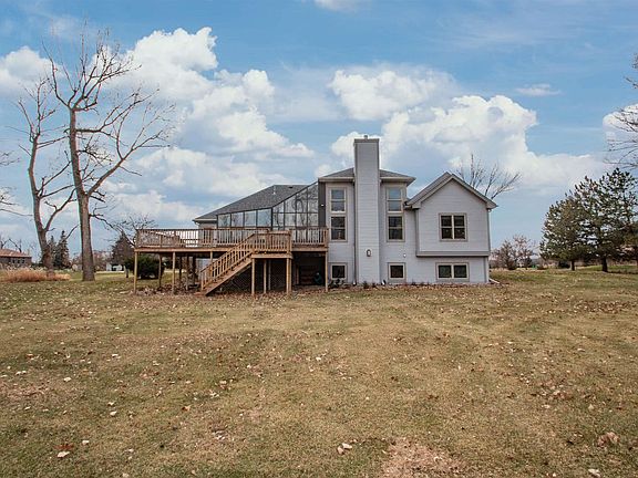 Custom built with only 2 owners, this ranch home was placed on the lot to face south with side load 3 car garage. Lot is 1.77 acres with private back yard. Newly built front courtyard enhances first impression with grilling area, lights and electricity. Front entry way is 7x12 with wood floors. Formal Living and Formal Dining room (holidays are coming). All bedrooms and family room have new wood floors July 2021, by Don Hanna. Main floor family room (12' ceiling) with gas fireplace is open to the kitchen, eating area. Kitchen has cherry cabinets, granite tops, gas cooktop, large pantry, newer frig, & vaulted eating area with new wood floors and skylight. Off the eating area to the back of the home is 3 season room, (Screen Builders) 12 x 17 +7 x10 with new tile floor and expanded deck 12x30, water proof treatment Fall of 2022. Split bedroom plan. Master Bedroom has french doors, popup ceiling, WIC (6x7) and double closet, complimented by complete bath with whirlpool, tile shower, & double vanity. Two more bedrooms and full bath with vaulted ceiling, skylight. Main floor laundry with sink. Straight Line painting repainted all rooms in 2020. Lower level has great entertaining spaces, one area with gas fireplace, one area around the bar/kitchen and balance of area 16 x 42 for games, pool table, etc. New addition is office 12x12 with sliders and tile floor 2022. 4th bedroom with daylight windows, 3/4 bath and den 13 x 13 with cedar closet. Stairs from garage to the basement, wired for a generator and storage room. New furnace 2016, New CA 2021, New Marathon water heater 2019, New garbage disposal & microwave 2022, New sprinkler controller 2022. New shingles 2019. New insulation 2019. Open enrollment Dakota Valley Schools.