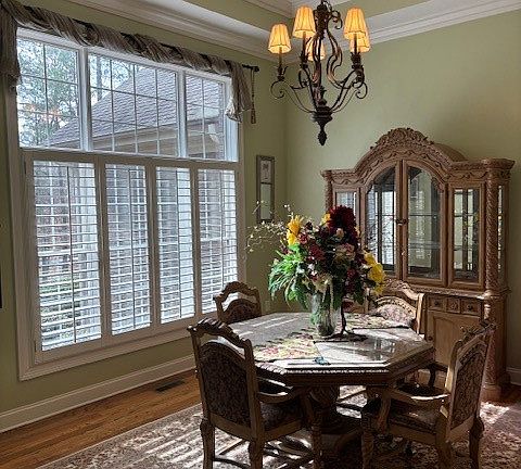 - Breakfast Area, Ceiling Fan(s), Eat-in Kitchen, Garden Tub/Roman Tub, Jetted Tub, Primary Downstairs, Walk-In Pantry, Window Treatments