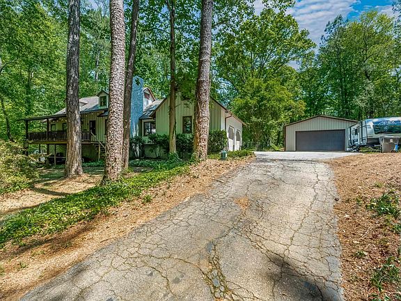 Back on the market at no fault of the sellers . Escape the hustle and bustle while still being just moments away from everything in this secluded rustic retreat. Tucked away in a serene wooded landscape on 2+ acres, this charming home beckons with its inviting covered front porch and tranquil surroundings. Step inside to discover a spacious master suite on the main floor, featuring a full bath and a generous walk-in closet. Ascend to the second floor loft, where three additional bedrooms and another full bath await. The basement level provides versatility with a full bath and a kitchenette, easily adaptable as a fifth bedroom. Outside, a spacious back deck overlooks a large in-ground pool, perfect for outdoor entertaining and relaxation. Noteworthy features include original wood beams, lovingly reclaimed from an old mill dating back to the 1800s, adding a touch of historic charm to the interior. Recent updates include a new roof, tankless water heater, and a high-efficiency pool pump and natural gas heater. With modern conveniences such as Wi-Fi thermostats and a Ring floodlight security camera, this home seamlessly combines comfort with technology. Don't miss the opportunity to experience all this distinctive property has to enjoy.