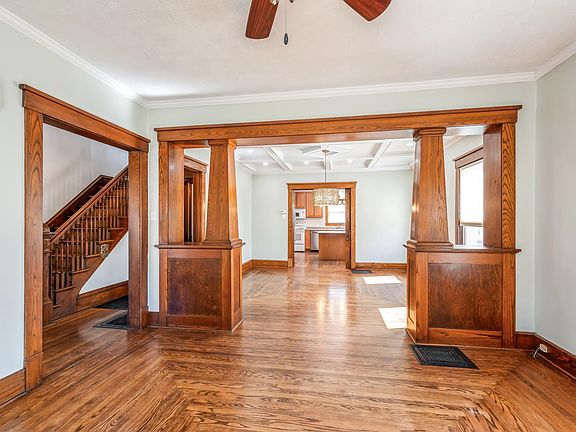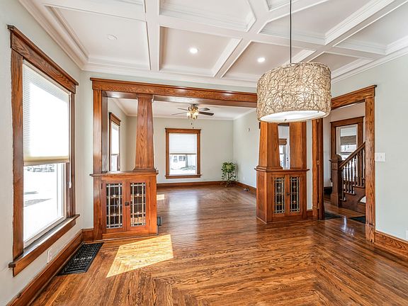 Beautifully updated 3 bedroom, 2 bath home in Olin, IA! Sit on the all vinyl front porch and enjoy the beautiful sunset! Just inside the front door is a cute enclosed front porch ready for you to decorate! Main floor features beautiful woodwork including colonnades to separate the formal dining room from the living room and each has window shades that raise and lower with the touch of a button. Kitchen has newer cabinets with lots of counter space, a pantry and breakfast bar. Just off the kitchen is the main floor laundry and a sunroom with vaulted ceiling that over looks the back yard. A beautiful wooden staircase leads you to the second floor with 3 bedrooms and a full bath with whirlpool tub. Spend lots of quality time on the 16 x 11 deck or the ample back yard with privacy fence. The shell of the 32 x 26 garage with loft is in place and ready for you to make your own.