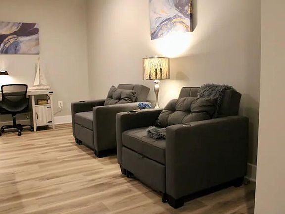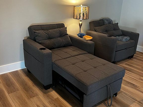 Spacious one-bedroom in-law suite in a quiet, residential community in Riva, MD? Look no further than this beautifully appointed, fully furnished one-bed/1 bath unit with access to the pool and patio area. Inside, you'll find an open modern eating area perfect for preparing your favorite meals. The kitchen boasts a microwave, air fryer, toaster, coffee maker, and beverage cooler. The property has high ceilings and luxury laminate flooring, making it spacious and airy. The living room area is comfortable and has an oversized sectional to enjoy your favorite movies. The bedroom has a king-sized bed, a large walk-in closet, room-darkening curtains, and a mini refrigerator to store your favorite drinks or food items. When it's time to unwind, head to the bathroom, complete with a full tub for soaking and relaxation for your convenience. Outside, you'll find a patio area with an umbrella for shade next to the pool, perfect for soaking up the sun or enjoying a refreshing swim. The apartment includes one dedicated parking space available, so you'll never have to worry about finding a spot to park your car. Overall, this quiet one-bedroom apartment with a pool and patio in Riva is perfect for couples or solo travelers who want to enjoy a relaxing and peaceful getaway with all the comforts of home. Don't miss your chance to rent this fantastic property today! Rent includes water, electricity, Wi-Fi. There is no smoking on the premises. Unit is for one occupant only.
