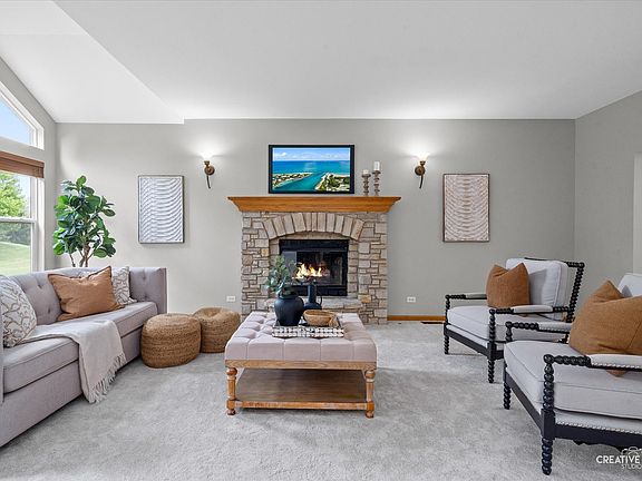 Gorgeous move-in ready 5 bedroom home with full finished basement, 3 car - tandem garage & a private backyard retreat! Recent updates: New front door & sidelights (2025) HVAC (2023), roof (2018), basement egress windows (2018), new ejector pump (2020), ALL NEW carpet & freshly refinished hardwood floors, full interior professional paint! Also comes with a transferrable home warranty! Tucked in a quiet cul-de-sac with no backyard neighbors-enjoy treelined views and meticulously maintained landscaping & private stone paver patio. Inside, you'll appreciate the open flow between the kitchen and family room complete with volume ceilings and stunning stone fireplace with mantle. The kitchen shines with granite countertops, stainless appliances, recessed lighting & island. Upstairs, the primary suite is a true retreat with tray ceiling, walk-in closet and spacious bath featuring a soaker tub, separate shower and dual vanities. Located in the highly-rated Oswego 308 school district with nearby walking paths, lake, shopping, dining and super low HOA fees of just $35/month... there's nothing to do but move in!