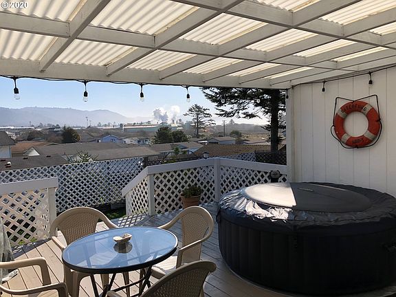 Very clean 3/2 with a nice ocean view from kitchen, dining and deck. Ocean peak from living room. Laminate floors throughout and a cute freestanding gas fireplace for the cool winter days. The front yard is maintenance free and the lovely backyard has a large deck and hot tub, raised beds for your veggie garden, a conversation area with portable fire pit and close to Mill Beach. There is also a small shop area off the laundry and most appliances included.
