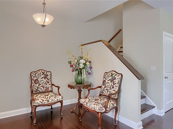 *Newer roof* Tour this immaculate, updated end unit with 9-foot ceilings, sprawling hardwood, plantation shutters and abundant natural light throughout. An open layout leads to the expansive family room with vivid windows and a modern tone. Step through the luxuriously updated butler’s pantry with Quartz counter and gorgeous backsplash to the jaw dropping gourmet kitchen with coffered ceiling, stainless appliances, endless granite counters, island with Quartz and soaring marble backsplash. Dining room has stylish lighting and access to composite deck. Ascend to the bright primary bedroom with a neutral tone, walk-in closet, and private bath with shower, dual sink vanity, and linen closet. Two luminous guest bedrooms are sizable, have overhead lighting, ample storage and share a hall bath with a tub/shower combo. Second level laundry completes. A walk out lower level adds additional living space through a sleek barn door and a tiled family entrance that has a sink and laundry hookups.