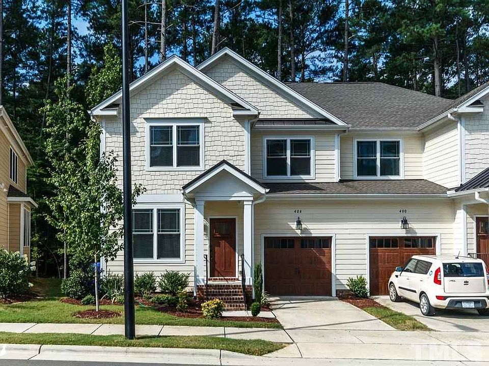 Terrific duplex style townhome w/in walking distance to Smith Middle & Chapel Hill High. Open floorplan. Granite kitchen w/tile backsplash, gas range, & recessed lights. 1st floor guest bedroom w/wooded rear views & full bath access. Large master suite w/WIC & granite bath w/tile floors. Bedrooms have ceiling fans. Loft upstairs has movie projector. Freshly painted inside. Covered front porch, cute rear deck facing the woods, one-car garage. Community pool & playground! Just minutes to I-40, UNC, & Duke.
