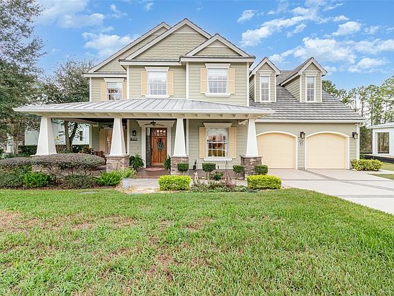 REFINED SOUTHERN ELEGANCE meets MODERN CRAFTSMANSHIP in this 5-BEDROOM CUSTOM ESTATE set on 1.7 ACRES within the GATED COMMUNITY of BLUE SPRING RESERVE. Surrounded by a 300-ACRE NATURE PRESERVE, the property offers TOTAL PRIVACY amid ancient oaks and tranquil conservation views—yet it’s LESS THAN A MILE FROM THE TURNPIKE with direct routes to ORLANDO, DISNEY, and the airport. A PAVER-ACCENTED CONCRETE DRIVEWAY leads to the home’s TIMELESS FAÇADE, highlighted by CEDAR-SHAKE ACCENTS, a DEEP WRAPAROUND PORCH, and an OVERSIZED 2.5-CAR GARAGE. Inside, nearly 5,000 SQ FT of living space showcases COFFERED CEILINGS, CROWN MOLDING, and WAINSCOTING—balanced by a NEUTRAL PALETTE and ABUNDANT NATURAL LIGHT. The CHEF’S KITCHEN features a 5-BURNER GAS COOKTOP, DOUBLE OVENS, a PREP ISLAND WITH SINK, BUTLER’S PANTRY, and GRANITE COUNTERS, all opening to a SPACIOUS FAMILY ROOM anchored by an ELECTRIC FIREPLACE and FRENCH DOORS leading to the POOL. A WET BAR and WINE NOOK make entertaining effortless. The PRIMARY SUITE offers DIRECT POOL ACCESS, a TRAY CEILING, CUSTOM WALK-IN CLOSET, and a SPA-INSPIRED BATH with SOAKING TUB and DUAL WALK-IN SHOWERS. Upstairs includes FOUR ADDITIONAL BEDROOMS, each with a WALK-IN CLOSET, plus TWO FULL BATHS, a LOFT, and a BONUS/GAME ROOM WITH WET BAR. Outdoors, enjoy a SCREEN-ENCLOSED POOL AND LANAI with a BUILT-IN GRILL, HALF BATH, and PRIVATE WETLAND VIEWS. Additional upgrades include TWO NEWER HVAC SYSTEMS, TWO TANKLESS WATER HEATERS, a WHOLE-HOUSE GENERATOR, WINDOW TINTING, FENCED DOG RUN, and a CUSTOM PET NOOK beneath the staircase. BLUE SPRING RESERVE combines SERENITY AND CONVENIENCE—where REFINED LIVING and NATURAL BEAUTY coexist effortlessly.