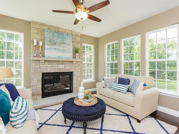 BETTER THAN NEW, this immaculate move-in ready 4 bedroom ranch is nestled on a quiet cul de sac street in Wyndgate Oaks neighborhood! This .48 AC private lot BACKS TO TREES. Stunning kitchen with center island breakfast bar, gorgeous granite countertops, & dazzling tile backsplash. Kitchen also features 42" cabinets, double ovens & stainless steel appliances. Enjoy your morning coffee cozied up in front of the stone fireplace in the hearth room. Great room has soaring 12' ceilings, wall of windows for natural light & SPECTACULAR views of nature. Spacious master bedroom suite w/ dual sinks, seated shower, & walk-in closet! 2 more generous sized bedrooms, laundry room, 2 bathrooms, & office round out main level. Finished walkout lower level complete with rec room, 4th bedroom, & full bath! Stamped concrete patio with built-in fire pit! Composite deck & irrigation system! 3 car side entry garage. Neighborhood pool, playground, sports court & trails. Fantastic location near Hwy 40 & 364!
