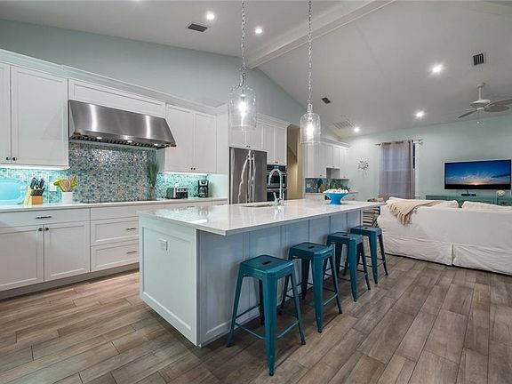 This exquisite luxury 5 bedroom 4.5 bath home is 2 blocks from the beach, and two streets to the shops on Pine Ave, and minutes to restaurants, and the City Pier. The home is offered tastefully turnkey furnished by a professional decorator. The remarkable open floor plan living space with high ceilings allows plenty of room for the whole family, with one of the four master bedrooms located on the same floor. The faux wood tile floors are the perfect accent to the granite counters, stainless steel appliances and custom cabinetry in the gourmet kitchen. True Florida outdoor living resides downstairs. There is a covered space downstairs is perfect for an outdoor entertaining area. Host the perfect event while your guests swim in the large heated pool or relax in the hot tub. A true Island paradise."