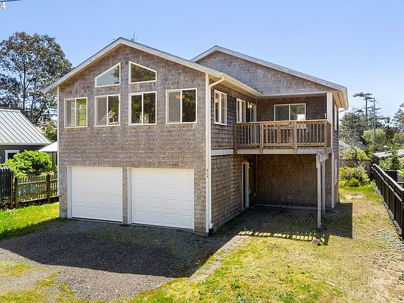 Here's your chance to turn an unfinished gem into your perfect beach retreat! This 3 bedroom, 2 bathroom home has a fourth room downstairs for a potential office or den, as well as a large attic space accessed through the primary closet allowing even more play space or creative storage . With vaulted ceilings, a brand new roof, two car garage, mostly fenced yard, brand new washer/dryer, view of Mt. Neahkahnie, and all utilities hooked up throughout, this home is now ready for the finishing touches of your personal aesthetic. No need to worry about parking when you can walk to the beach, grocery store, restaurants, and shops right from your own front door. With everything within walking distance, this location offers convenience and coastal charm. Floors, doors and a kitchen to your design will go a long way. House being sold as is. This opportunity doesn't come often!