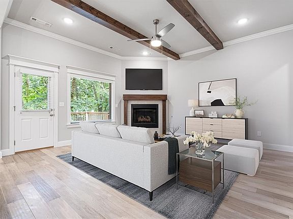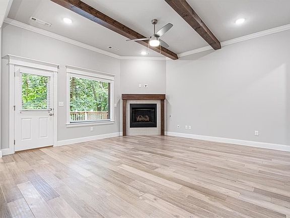 Welcome to paradise in the heart of Pea Ridge! This 2021-built home rests at the end of a quiet cul-de-sac, surrounded by mature trees. Just 10 minutes to I-49 and minutes from schools, groceries, and dining, the location perfectly balances peaceful surroundings with small town convenience. Step inside to an inviting open floor plan with rich wood-beamed ceilings, a spacious island, granite countertops, abundant cabinetry, and a dedicated dining nook. The private primary suite is a true retreat featuring LVP flooring, a whirlpool tub, tiled walk-in shower, and wraparound his & hers closets. Cozy up by the gas fireplace or savor the outdoors on the expansive back deck complete with string lights. The .28-acre lot is ideal for outdoor fun! Three additional bedrooms each feature large walk-in closets, offering excellent storage. Don’t miss your chance to make this one-of-a-kind home yours!