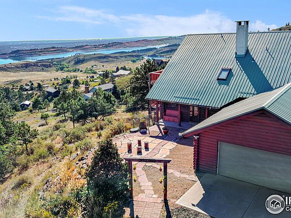 Nestled in the foothills above Horsetooth Reservoir, this cozy log home offers an unparalleled blend of comfort and natural beauty. With INCREDIBLE panoramic views of the reservoir and surrounding landscapes, you'll be captivated from the moment you arrive.Entertain or unwind in the open patio courtyard, perfect for gatherings or simply soaking in the breathtaking scenery. Inside, the home exudes warmth and charm, featuring a bright, open kitchen with a spacious walk-in pantry. The inviting living room boasts floor-to-ceiling windows that flood the space with natural light.The large office provides ample room for additional seating or a cozy den, while a bright loft offers access to one of three outdoor decks-ideal for savoring the fresh mountain air. The spacious primary bedroom is a true retreat, complete with a private deck, additional seating area, and a generous walk-in closet with dual entrances. The luxurious 5 piece en-suite bath features abundant storage, and a skylight for stargazing at night.A covered breezeway connects the garage to the front door, ensuring convenience and protection from the elements. Wildlife abounds in this serene setting, making every moment feel like a getaway in the heart of Colorado's natural splendor. Experience all the beauty and tranquility this remarkable home has to offer!