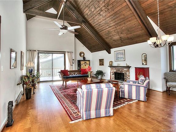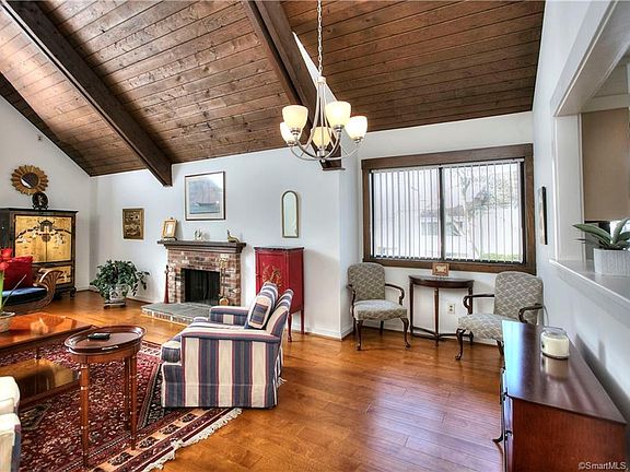 Enjoy carefree living at the active adult community complex of Oronoque Village, set amongst 300 picturesque acres and surrounded by a PGA golf course. This coveted Whittier unit features a gorgeous open living/dining room with vaulted ceiling and fireplace. Sliding doors lead to a sunny oversized deck. Just off the living room is a cozy family room with attached den. Eat-in Kitchen with newer appliances, with a convenient pass-through window into the living/dining room. Oversized master bedroom suite with full bath and walk-in closet. Additional full bathroom in hallway. The spacious lower level features a large recreation room, laundry room, attached one-car garage and storage room. Updates include hardwood flooring in living room and family room, carpeting in master bedroom and lower level, interior paint. Newer refrigerator, microwave, hot water heater, washer, dryer. Potential for family room/den to be used as a second bedroom. This unit has been nicely maintained and has a wonderful flow for entertaining. Enjoy the country club lifestyle at Oronoque Village, with pool, pool house, clubhouse, tennis, health club, social activities, and more. Sold as-is, estate. There is an add'l district tax of $455 which is paid quarterly. Stratford is a vibrant coastline community on Long Island Sound, with easy access to beaches, MetroNorth train to NYC, highways, shopping, and restaurants.