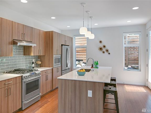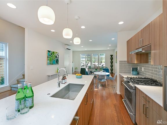 Exceptional 1 yr old stand alone modern home in one of Seattle's most coveted communities - Fremont! This 2100 sqft home is finely crafted by Sage Homes & is 4 Star Built Green. This 3 bedroom + den is in a private location & has a fabulous rooftop view deck! The main floor great room is elegant & sleek with chef's kitchen,hardwood floors & lots of windows. Beautiful master suite w/extensive closet built-ins &5 piece bath. Minutes to Seattle, Zoo & other community hot spots. Don't miss this one!