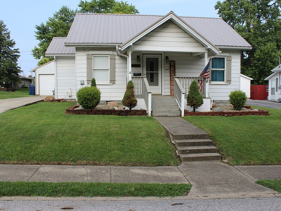 Nice well-kept 2-bedroom 1 bath home in town, all appliances will remain, this home has many upgrades including newer metal roof, vinyl windows, concrete driveway and covered front porch Partial basement, new 1car detached and fenced in backyard.