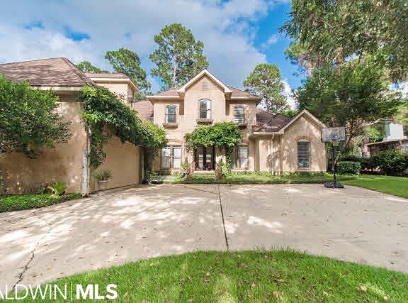 Truly STUNNING Masterpiece of a home! Country estate in style, the home's every detail adds beauty & luxury: from Arched Double Doors in front and Deep Crown Molding, to the Living Room's elegant pillars & French Doors. A Wall of Windows along back of home floods the interior with sunlight, while GOURMET Kitchen offers 5-burner Gas Range, Granite, White Cabinetry & Custom Wood Detailing, Island Counter, Breakfast Bar & Double Ovens! Plus Breakfast Area includes Mini Office Area! Den features Built-In Shelving and Gas-Logs Fireplace with superb tiled Hearth. In Master Suite, find Porcelain Tub, Custom Tile Shower, Private Water Closet & His&Her Vessel Sinks. Jack&Jill Bath connects 2 upstairs Guest Beds, and upstairs Bonus Room has Dormer Windows. Relax outdoors on your spacious Covered Porch with Custom Ceiling Fans, extended Patio ideal for Fire Pit, & pleasing views of your Privacy-Fenced immaculate green lawn. All of this Deep Tree Forest subdivision, minutes from Downtown Fairhope!