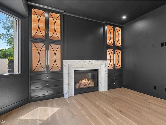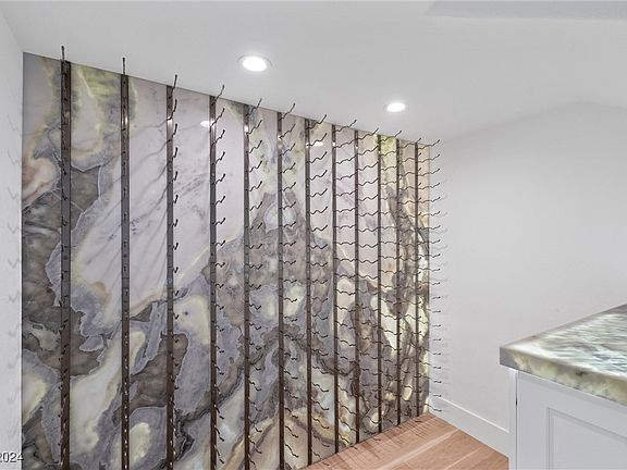 Perfectly designed for both grand entertaining and serene everyday living, this home boasts an array of high-end finishes and thoughtful touches throughout. As you step inside, you’ll be greeted by an elegant entryway that flows seamlessly into the main living areas. The gourmet kitchen is a chef's dream, featuring marble backsplash, sleek Quartzsite countertops, and top-of-the-line Thermador appliances, including a touch-to-open refrigerator. Backlit onyx wine wall with Display Bar.