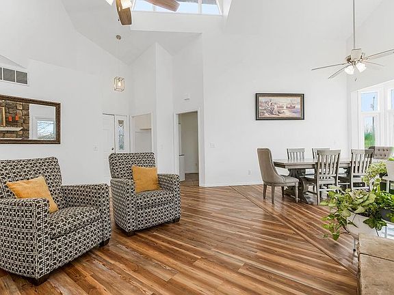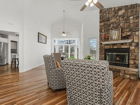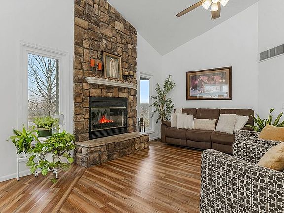 Nestled on 15.5 sprawling acres of picturesque countryside, this stunning 4-bedroom, 3.5-bath ranch home offers the perfect blend of modern comfort and serene rural living. Recently updated and thoughtfully designed, this property is ideal for anyone seeking a peaceful escape with ample space to enjoy nature and outdoor activities. Step into an inviting open-concept great room featuring soaring vaulted ceilings and a breathtaking floor-to-ceiling stone fireplace, perfect for cozy evenings or entertaining guests. The well-appointed kitchen boasts ample cabinetry, and a large dining area ideal for family meals or hosting dinner parties. Retreat to the expansive primary bedroom with its own private en-suite bath, offering a peaceful sanctuary after a long day. Three other generously sized bedrooms provide plenty of space for family, guests, or a home office, with two additional full bathrooms and a convenient half-bath on the main level. The lower level features a spacious family room, perfect for movie nights or a game room, plus a 5th non-conforming bedroom—ideal for guests or a private retreat. A full bathroom completes this versatile space.