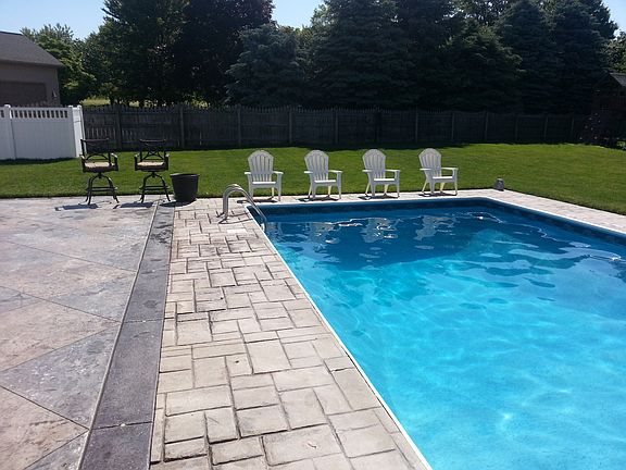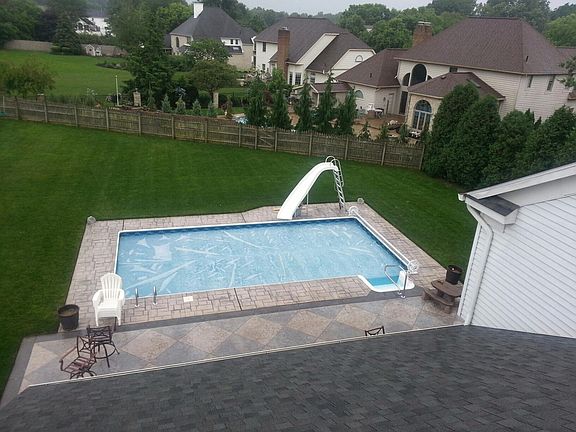 Our home is a 2916 sq ft colonial with an open floor plan situated in a quiet and safe cul-de-sac in Bob-O-Link in the North Canton CSD. The interior has been completely updated over the last five years including an addition of 568 sq ft of finished space in the basement which contains a play room and theater room (full 7.1 surround sound, 1080P projector, 120" drop down remote-controlled screen, and reclining leather theater seats). The expansive kitchen boasts not one, but two areas with bar stool seating, stainless steel appliances, granite countertops, large pantry, tons of cabinets, and a built-in desk area. The first floor living space also includes a large welcoming foyer, family room with fireplace surrounded by built-ins, formal dining room, living room, half bath, first floor laundry with tons of storage space, and an office with an entire wall of built-in bookshelves. Upstairs you will find a full bath, an enormous walk-in linen closet, 3 large bedrooms each with tons of closet space, and the master suite which has impressive vaulted ceilings as well as a walk-in closet. The master bath which has a skylight, jetted tub, and double sinks will be left as a blank canvas for the new owners to design a master piece of their own. But the interior of this home is not the show piece. The yard is one of the largest and most beautiful in the allotment! The backyard is completely fenced in and contains a beautiful 16'x32' in-ground pool with a water feature and a sliding board, a gorgeous 3 yr old stamped concrete patio, and large playset.