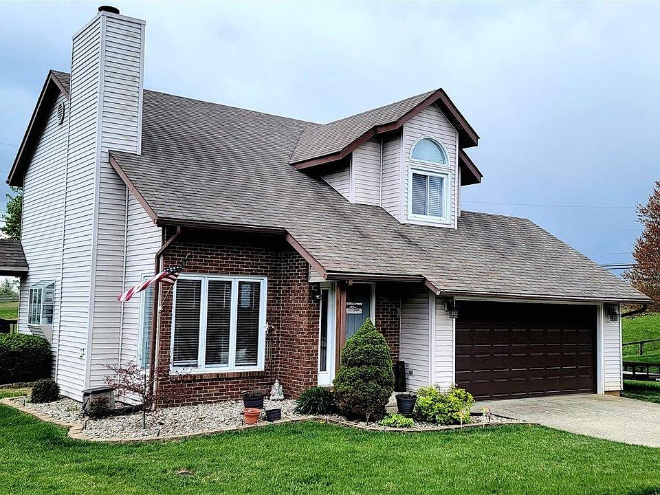 Charm!!! Step into this 3 bedroom home conveniently located in the heart of Elizabethtown. The kitchen is updated with quartz countertops and bar window overlooking the family room with newer laminate flooring, loft ceiling, and a wood burning fireplace. Walk from the large dining area to the oversized private and covered back deck, perfect for relaxing or entertaining. The master suite offers its own vanity space and walk in closet. Other features include newer floor covering, tons of kitchen pantry space, a gorgeous laundry area, newer insulated garage door, side walked subdivision close to all the conveniences of town. Schedule your tour today.