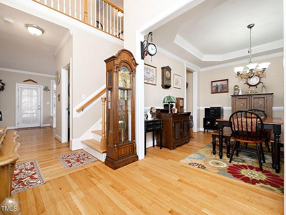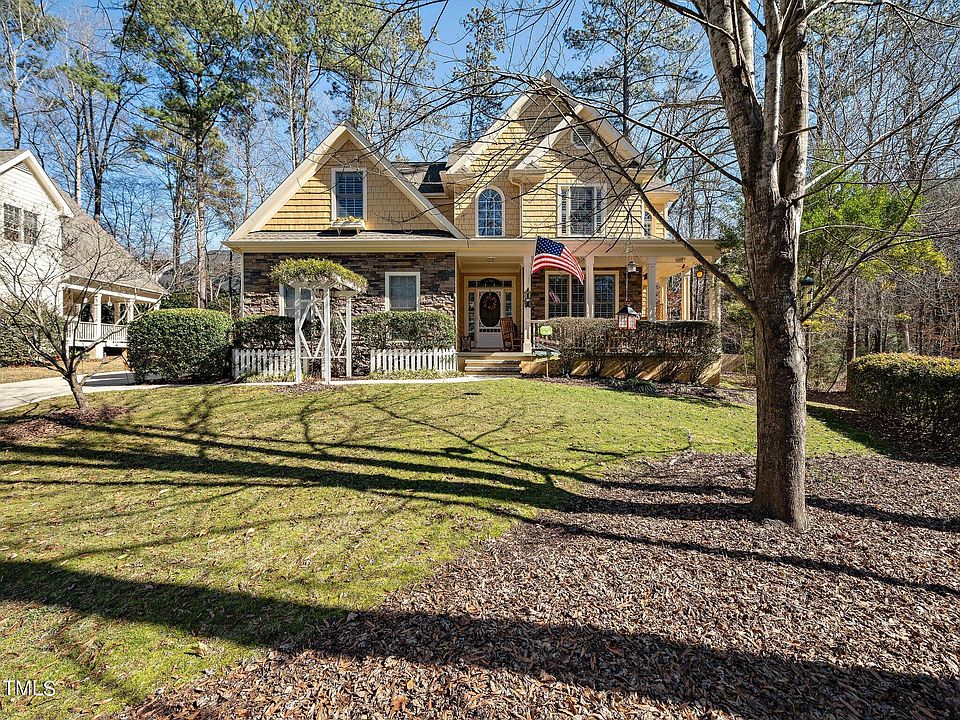 Beautiful 2-story home nestled on a lovely cul-de-sac in Wake Forest. Popular Joyner Park just a few minutes of walking distance. This home boosts 3 bedroom, 2 1/2 baths, and a large bonus room. Kitchen granite and backsplash has been upgraded and replaced. NO HOAs! Refrigerator, washer, dryer stays with the home. Multiple areas for outdoor living space. Home upgrades: exterior paint 2020, roof 2020, tankless gas water heater 2021, luxury carpet in bedrooms/bonus room 2023, plantation shutters throughout 2021, oak treads on stairs and hardwoods installed on 2nd floor 2023. Don't miss your opportunity to own this meticulously well kept home!