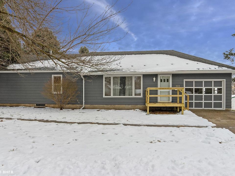 This 2 BR/1 Bath home has a huge living room to spread out in Nice sized kitchen with a dining area and a 1 car attached garage. The washer and dryer are upstairs too Basement allows for your own finish. Come see this nice home on a corner lot