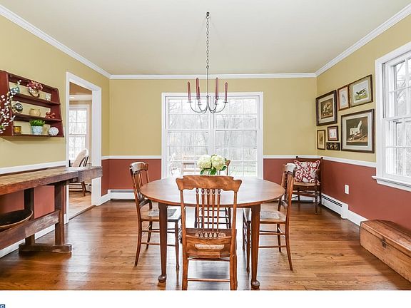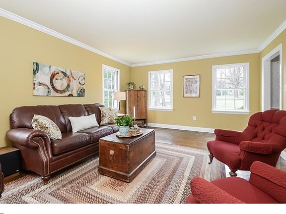 Situated on a quiet dead end street backing to preserved open space Curlis Woods, this New England style salt box Colonial is surrounded by lush acreage that blooms all summer long. With a vacation-like atmosphere and classic Colonial feel, the comfortable and stylish interior shows off a variety of updates and a well arranged floor plan. An inviting front to back living and dining room, with a multitude of windows and wood flooring, lends itself to formal or casual entertaining. A well designed kitchen features ample wood cabinetry, tile back splash, updated appliances, bay window enhanced breakfast nook, and solid surface bar height seating with pendant lighting. The adjoining family room anchored by a wood burning fireplace has direct access to the two tired deck and rear fenced yard. On the upper level a master suite shows off a newly renovated bathroom with seamless glass shower, tile flooring and marble topped vanity joined by three other bedrooms and an updated hall bath. Additional highlights include, first floor den/guest room full bath, attached 2 car garage, full basement, new hot water heater, new chimney/flue liner, exterior painted and professionally landscaped lot. This home has a superior location on a quiet street with a country feel but is close to historical downtown Pennington with its local shops, eateries, parks,library and highly ranked schools.