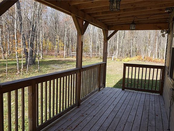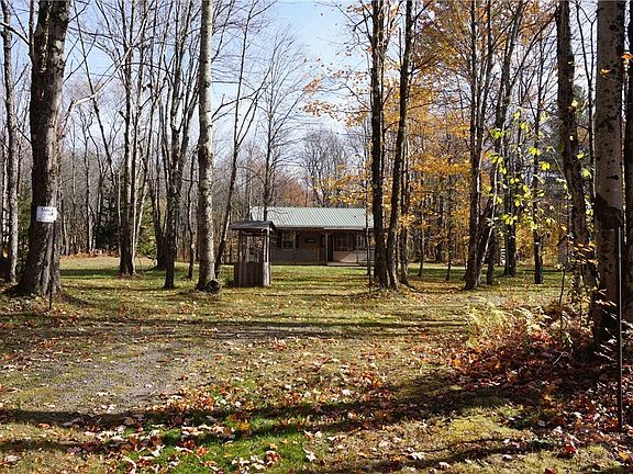 Discover peace, privacy and natural beauty with this charming ranch style home. Situated on a 4.04 acre, mostly wooded lot with trails thru-out. This well-maintained 2BR, 1BA retreat offers all the amenities of home - electric, well, septic - even wi-fi! You'll find not only one covered porch that spans the entirety of the house but a second that is screened - ideal for morning coffee, outdoor dining or simply soaking in the sights and sounds of nature. Step inside you and will find a living, dining and kitchen combo. Follow the hallway to the full bath and 2 bedrooms. Stackable washer/dryer located in the hallway closet. Both bedrooms have large closets plus additional coat closet in the living room entryway. This home is 1/10th of a mile past the snow plow turn-around, offers direct access tot he main corridor snowmobile trail, plus close to atv trails. Vast state game land in the area plus you'll be just minutes from the Salmon River Reservoir.
